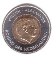 錢幣材質為外圈:鍍鎳鋼( Nickel Plated Steel ),內圓:鍍銅鋼 ( Bronze Plated Steel ) 合金,直徑 28.00mm,重7.2g。註:本枚為古拉索版,另有聖馬丁版。邊緣刻有" God zij met ons "(願上帝與我們同在)字樣。 |